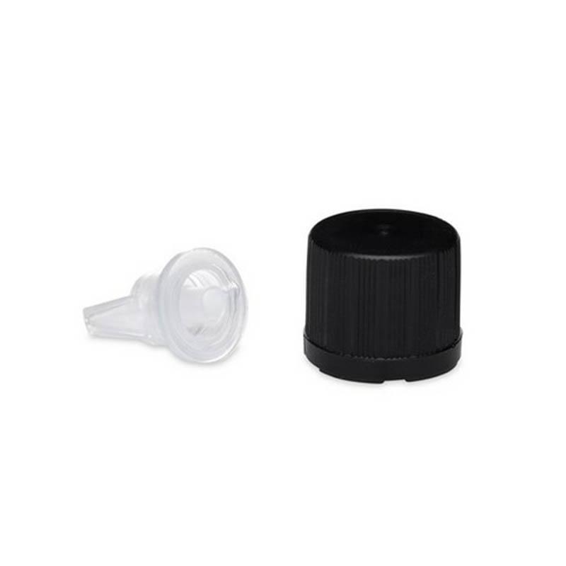 Includes a Black Tamper-Evident Cap with Dropper Plug