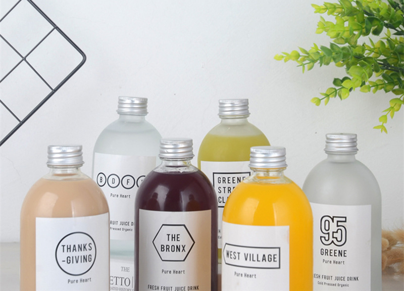 Nordic style juice cold drink glass sealed beverage bottle with coffee bottle aluminum cap fruit wine bottle cold brewed milk tea bottle.