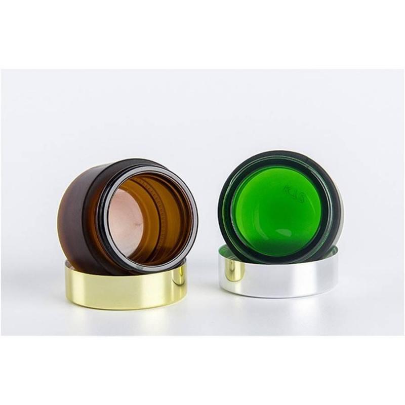 These high quality, green, Amber,glass, round jars are perfect for use with lotions, creams, and scrubs. Each empty lotion jar comes with a matching inner liner and dome lid which provides for a tight and secure seal.