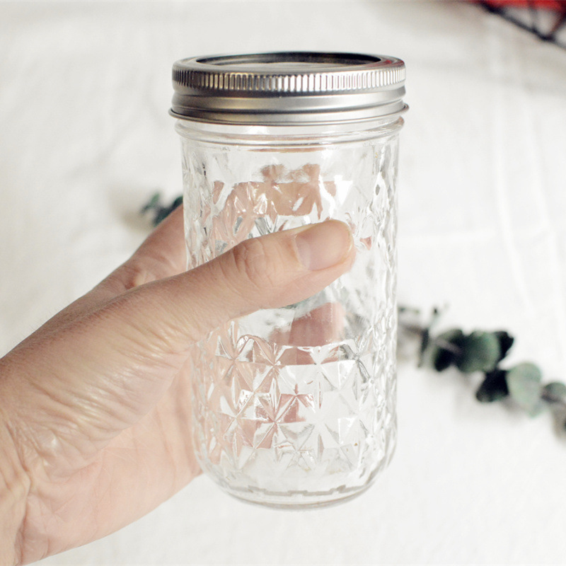 Tinplate Lid Glass Jar Diamond Diamond Caviar Bottle Honey Bottle Milk Tea Bottle Cake Bottle is easy to clean, reusable.