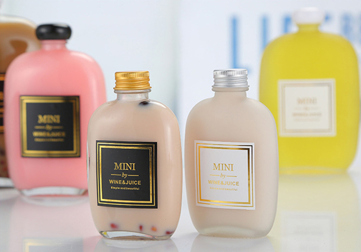 Wide range of uses: thickened glass beverage bottles are divided into juice bottles, the bottle body is transparent and bright, suitable for sub-packaging of juice drinks, coffee, cold drinks, etc.
