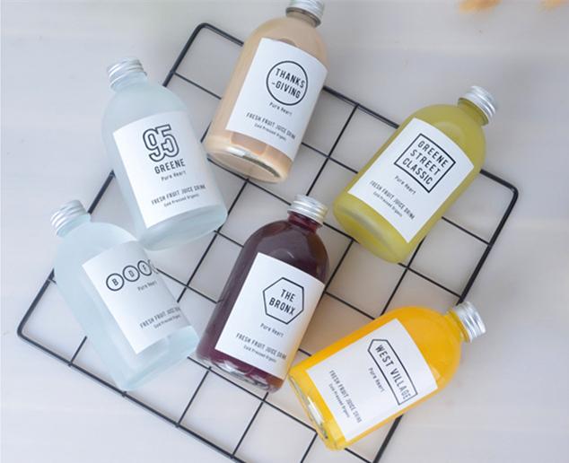 Nordic style juice cold drink glass sealed beverage bottle with coffee bottle aluminum cap fruit wine bottle cold brewed milk tea bottle.