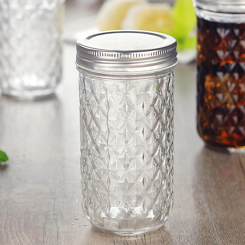 Tinplate Lid Glass Jar Diamond Diamond Caviar Bottle Honey Bottle Milk Tea Bottle Cake Bottle is easy to clean, reusable.