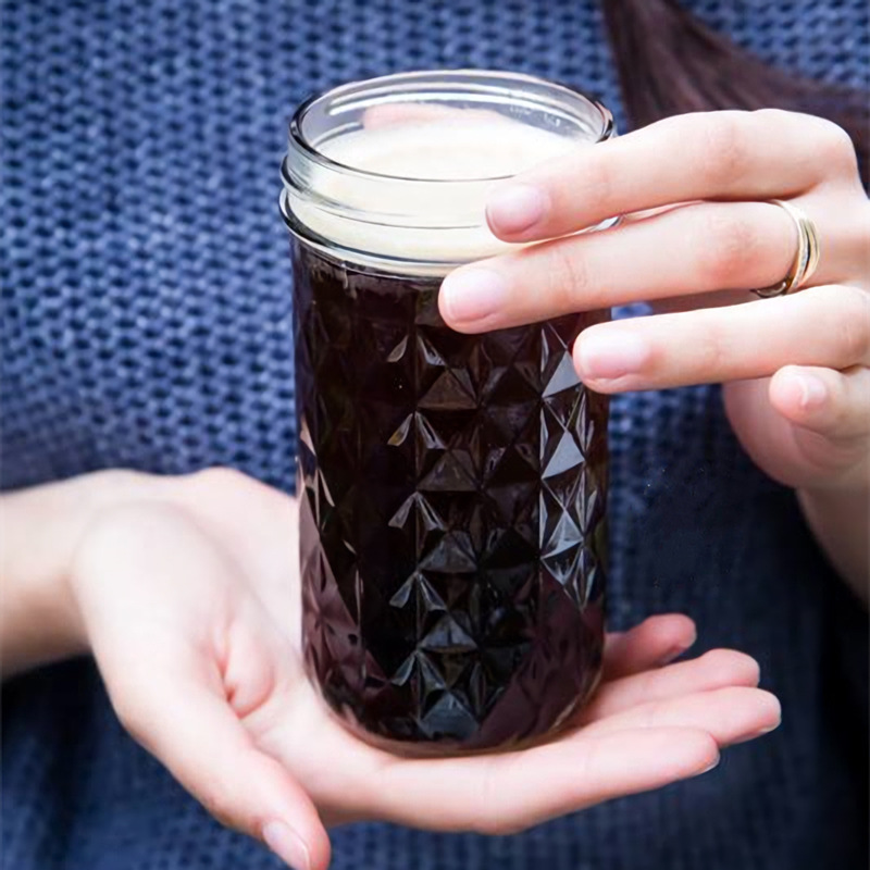 Tinplate Lid Glass Jar Diamond Diamond Caviar Bottle Honey Bottle Milk Tea Bottle Cake Bottle. These clear glass beverage bottles can withstand both high and low temperatures, making them usable for hot filling or cold pressing vegetable and juice drinks.