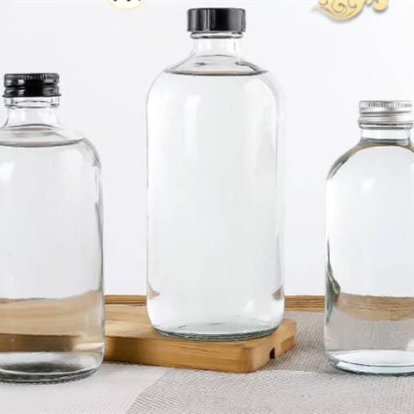 These clear glass beverage bottles can withstand both high and low temperatures, making them usable for hot filling or cold pressing vegetable and juice drinks.